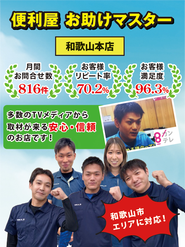 もし、家具を運べない場合やお部屋がゴミだらけで家具を動かせないといった状態でお困りでしたら、お助けマスター和歌山本店にお気軽にご相談ください!